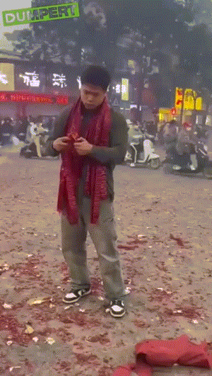 我就说找一下会找到有人挂脖子上放鞭炮